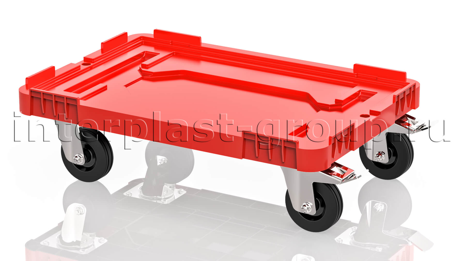 Тележка пластиковая сплошная 2 колеса с тормозом красная